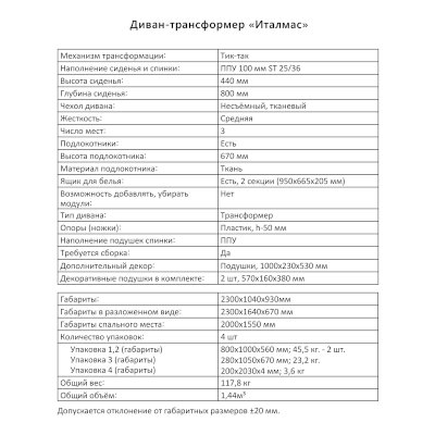 Диван-трансформер Италмас (Аквилон) продается в интернет-магазине mebel-v-cheboksarah.ru по цене 73 376 руб. Есть доставка по Чебоксарам и Республике Чувашия. Возможность подъема на этаж и сборки уточняйте у менеджера по телефону 8(800)505-27-11.